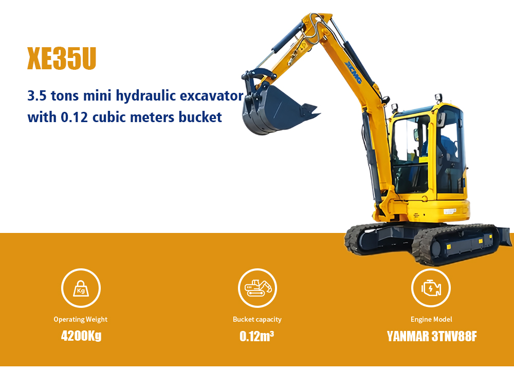 Sa kabila ng maliit na sukat nito, ang XE35U mini excavator ay versatile at maaaring gamitin para sa iba't ibang mga aplikasyon tulad ng paghuhukay, pag-trench, landscaping, demolition, at higit pa. Maaari rin itong lagyan ng iba't ibang mga attachment upang umangkop sa iba't ibang mga kinakailangan sa trabaho.